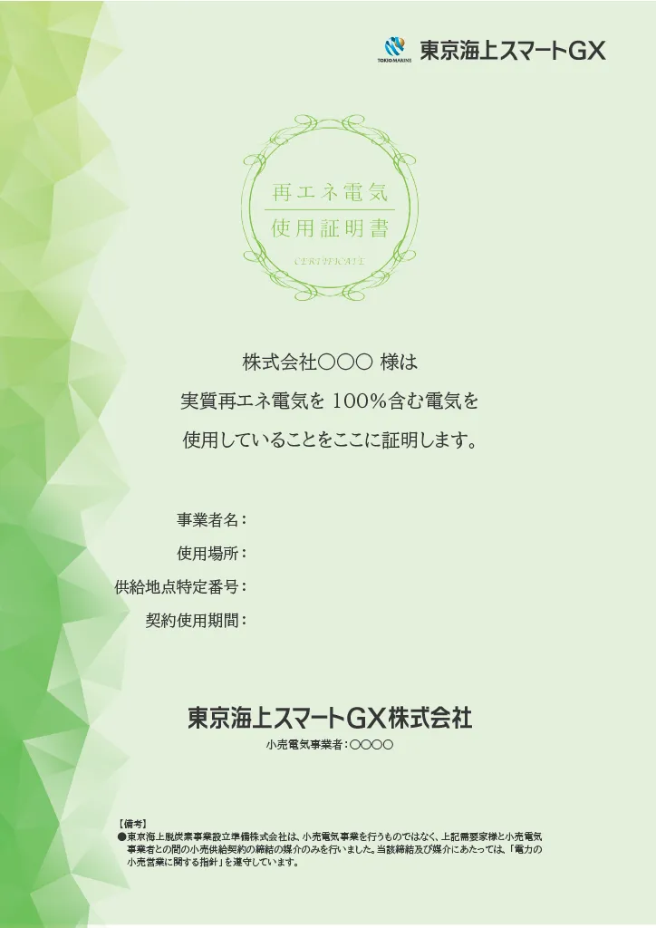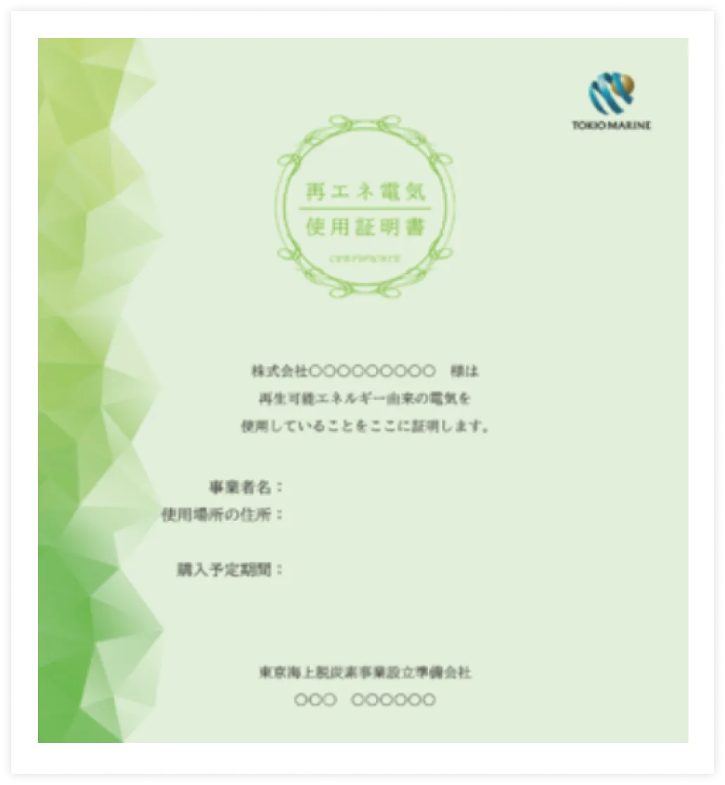 実質再エネ電力によって発電された電力を使用していることを証明するための当社による証明書を発行します。